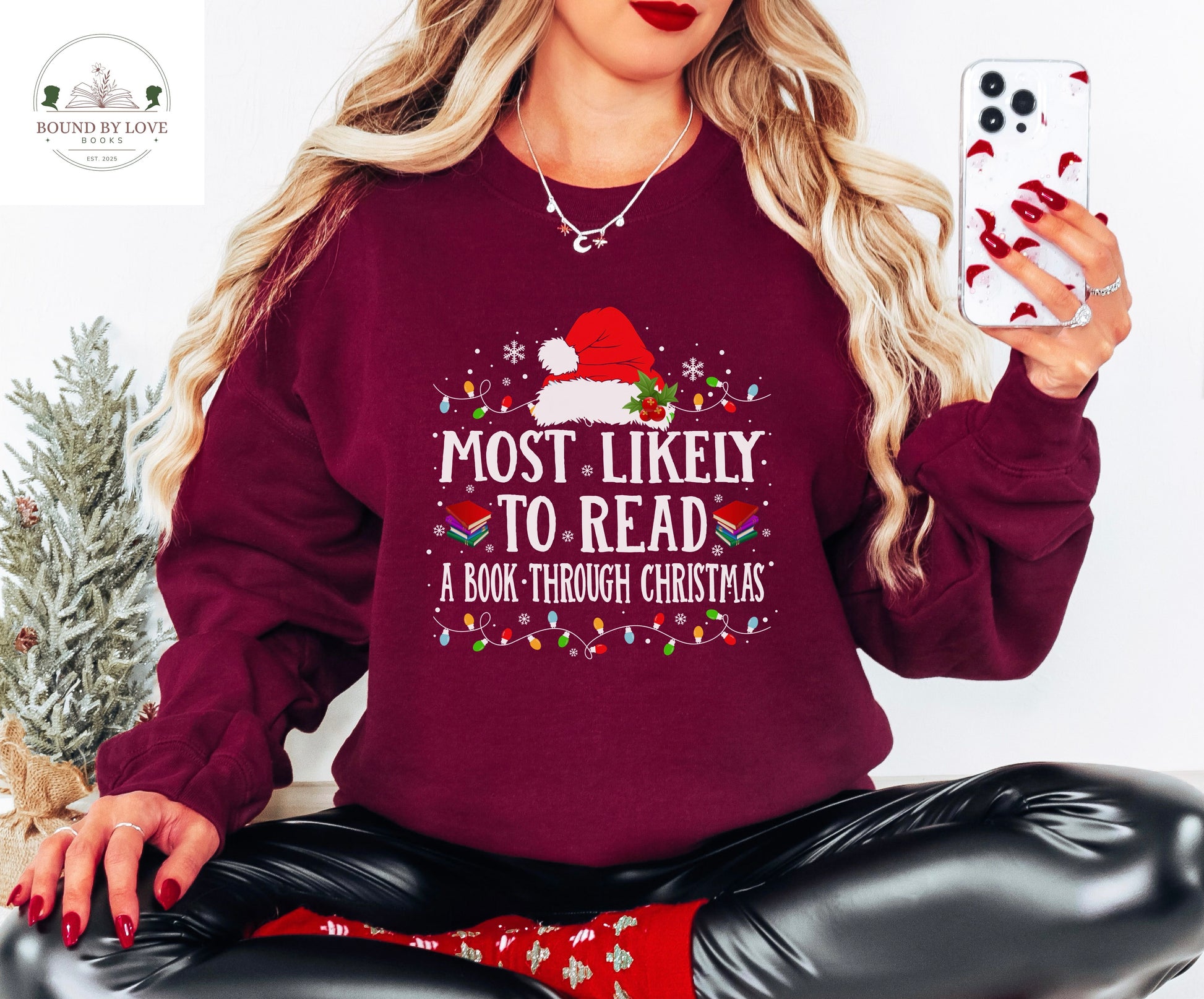 Most Likely to Read Through Christmas Crewneck 🎄📚✨